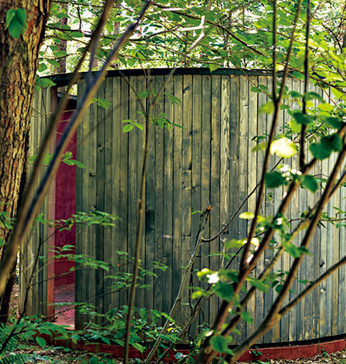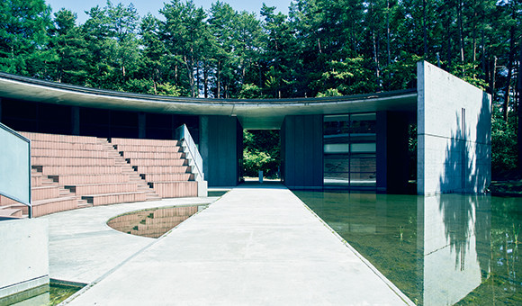 300名収容できる野外ステージと、水のテラス。インスタレーションの展示にも使われる。森を生かしたいと、建設時に伐採した木はわずか22本。