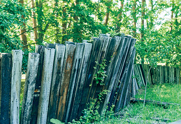 土屋公雄作『記憶の風景』。古い枕木が並ぶ様子は、青森の鉄道の歴史を彷彿とさせる。自然の中の作品は、危険等がない限り、古くなっても手を加えない。経年変化も楽しみのひとつ。