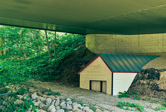 川沿いに立つ小さな家は、ドイツ人アーティスト、コーネリア・コンラッズによる『隣人たち』