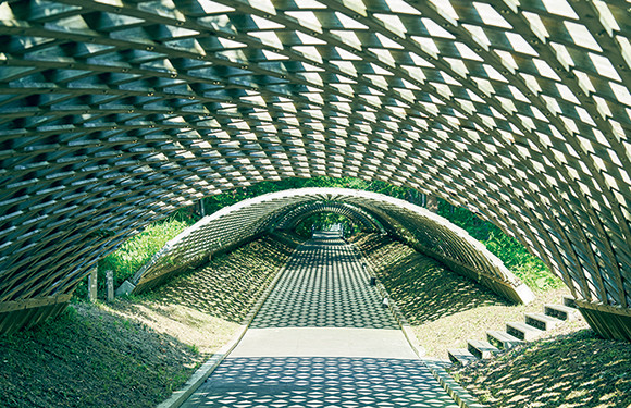 施設の入口から展示棟に続く道には、「四季のアーケード」と呼ばれる木のトンネルが続いている。