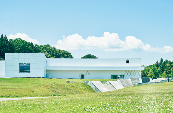 一見シンプルに見える直方体の美術館。見どころは地下にある。建築家・青木淳がインスパイアされたのは、美術館のすぐそばにある日本最大級の縄文集落跡、三内丸山遺跡。トレンチと呼ばれる壕を意識し、地下に展示室を造り、土壁をあしらった。その地下に佇むのが奈良美智の『あおもり犬』。発掘されたかのように、よく見ると足元が埋まっている。館内には縦・横21×高さ19mにもなる大空間が広がり、マルク・シャガールのバレエ『アレコ』の背景画を展示。見上げた時、その壮大さに息をのんでしまう。