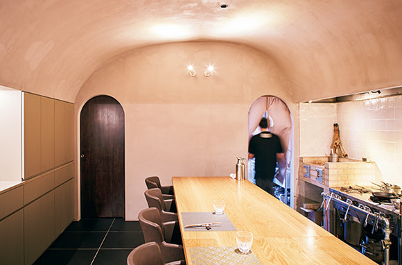 青森市の中心地に位置。かまくらのような店内は、カウンター席のみ。基本は1日1組限定。