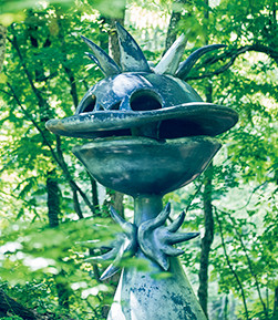 ホテルの敷地内、渓流の小路には岡本太郎の『太郎カッパ神像』が立つ。