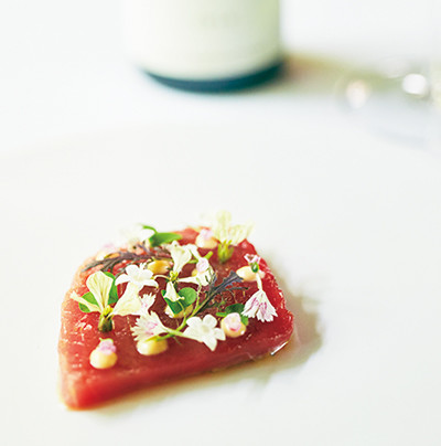 奥入瀬の自然をフレンチで表現するソノール。季節によって食材や料理が替わる。マグロを使った一品はファンも多い。