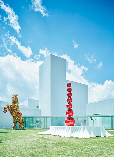 160本もの桜の木が並び、春になると一面がピンクに染まる官庁街通り。この通り沿いに2008年に建てられたのが十和田市現代美術館だ。展示されるのは名和晃平や塩田千春といった現代を代表するアーティストの作品。大小さまざまな長方体の展示室が連なる建物はSANAAの西沢立衛によるもので、これらの常設作品に合わせて設計。1部屋に1アートがベースで、空間そのものを楽しめる仕掛けがある。美術館の誕生を機に、通りや町中も徐々にアート化。草間彌生作品が彩るアート広場や、スペインの作家によるカラフルなベンチなど、街歩きまで楽しいエッセンスが十和田には詰まっている。