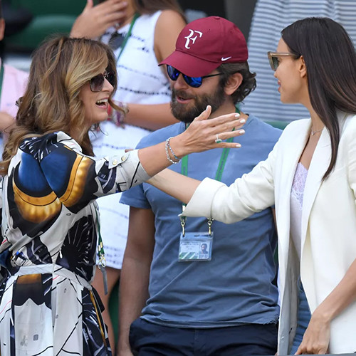 ブラッドリー・クーパーの新恋人を紹介:納得の様子。(イリーナ・シェイクを迎えるミルカ・フェデラー、2016年7月6日、ウィンブルドン)photography: Getty Images