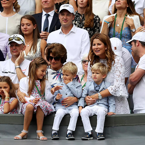 2009年4月11日、スイス・バーゼル近郊のリエンでふたりは結婚した。同年7月には双子のマイラ・ローズとシャーリーン・リヴァが誕生している。5年後の2014年には、双子の男の子であるレオとレニーが誕生した。6人は一緒に世界中を回り、さまざまなコートでプレーしてきた。10歳になったばかりの娘たちは、やがてスイスの中学に進学する予定だ。それまでは、シッターと家庭教師がふたりと少年たちと一緒に移動している。というのも、ロジャー・フェデラーはあることに特に熱心で、「妻といつも一緒に寝たい。子どもは欲しいけれど、夢はまず彼女と一緒に、同じ部屋にいることだった」と2018年11月にサンデー・タイムズ紙に語っている。
