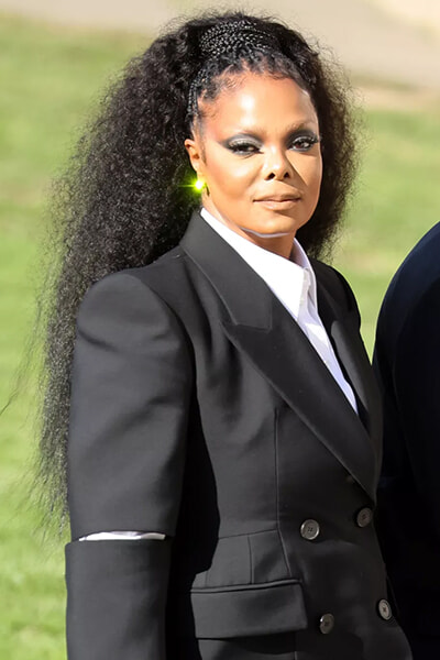 2022年10月11日、ロンドンで行われたアレキサンダー・マックイーン2023年春夏ショーでのブリーチ眉毛姿のジャネット・ジャクソン。