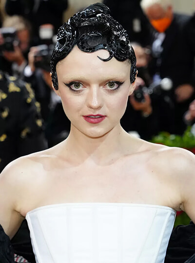 2022年5月2日、METガラに登場したブリーチ眉毛姿のメイジー・ウィリアムズ。