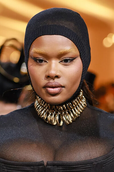 METガラはこのような実験的なメイクアップをする絶好の機会である。ヴェルサーチェ、ジバンシィ、ヴァレンティノ、ヴィクター&ロルフ、コペルニなど、今年のランウェイでは、ブリーチ眉毛が数多く登場した。
