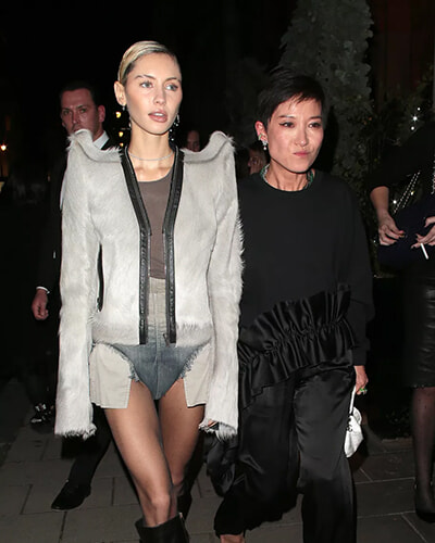 ジュード・ロウの娘でモデルのアイリス・ロウが、今回の2022年版ツリーをデザインしたサンドラ・チョイを伴ってクラリッジのクリスマスパーティに登場。