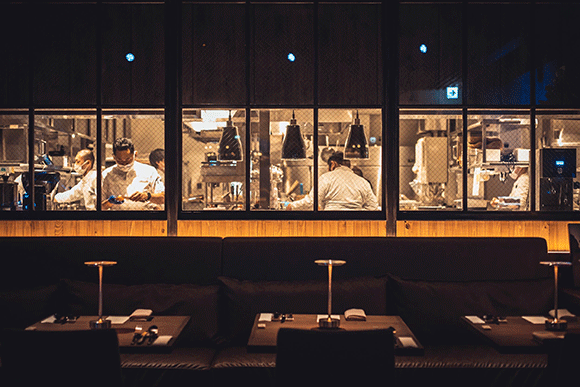 厨房の躍動感が伝わるオープンキッチン。Photography : Tsuneo Koga