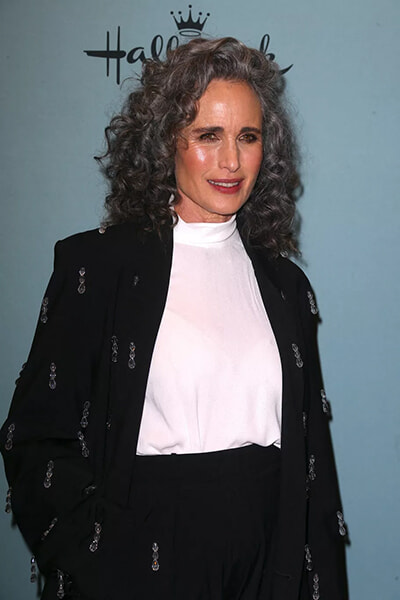 アンディ・マクダウェル(64歳)とシルバーカーリーヘア。