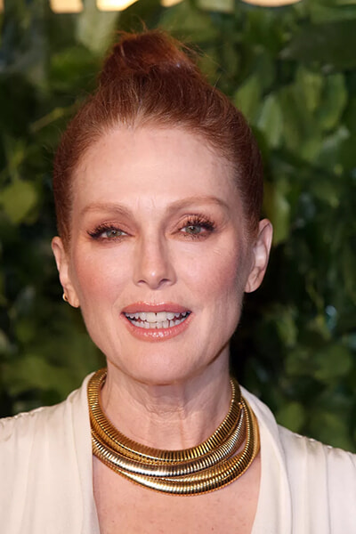 ジュリアン・ムーア(62歳)とひっつめたお団子ヘア。