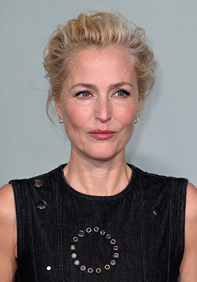 ジリアン・アンダーソン(54歳)とゆるふわお団子ヘア。