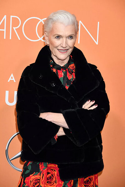 メイ・ムスク(74歳)、ロックなシルバーショートヘア。