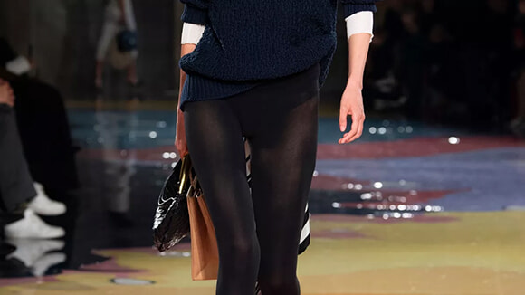 ストッキングにズボンの役割を与えることは難しいが、タイトなレギンスならば近い役割を果たすかもしれない。脚を美しく見せるには、不透明なタイツや最近復活しつつあるカラータイツがオススメだ。「ズボンなし」をドレッシーに見せるという、実にシンプルな課題だ。スリークォーター・レングスのジャケットやマイクロショーツ、ブーツや大きめのプルオーバーをまとえば、ズボンなしが自然な印象へと和らぐ。人によっては、開放的な気分で外出できるかもしれない。
