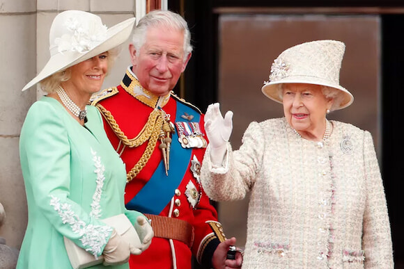 クイーンコンソートから王妃となったカミラ夫人とチャールズ国王、そして生前のエリザベス女王。photography: Getty Images