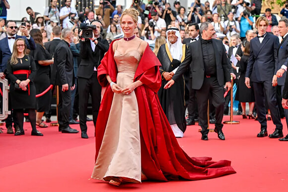 『キル・ビル』でヒロインを演じた女優は息子のレヴォン・ロアン・サーマン=ホークと腕を組んで登場。彼女は俳優でプロデューサーのマイケル・ダグラスに名誉パルムドールを進呈する役目を任されている。78歳のアメリカ人俳優は妻で女優のキャサリン・ゼタ=ジョーンズと19歳になるふたりの娘ケーリーとともに大階段を上り、仲睦まじい姿を見せた。