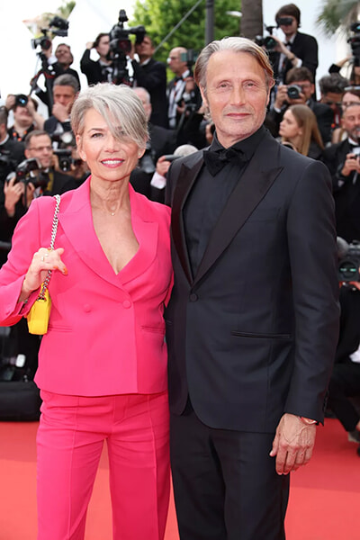 ショパールのジュエリーを身につけたハンネ・ヤコブセンとマッツ・ミケルセン。(カンヌ、2023年5月16日)