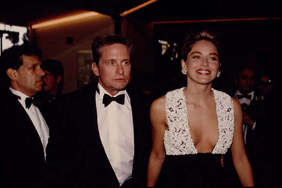 1992年、『氷の微笑』のカンヌ上映で女優シャロン・ストーンは俳優たちの注目を浴びた。それから30年後の5月16日(火)、カンヌ国際映画祭で元共演者のマイケル・ダグラスがパルムドール賞を受賞するに伴い、再び注目の的となった。