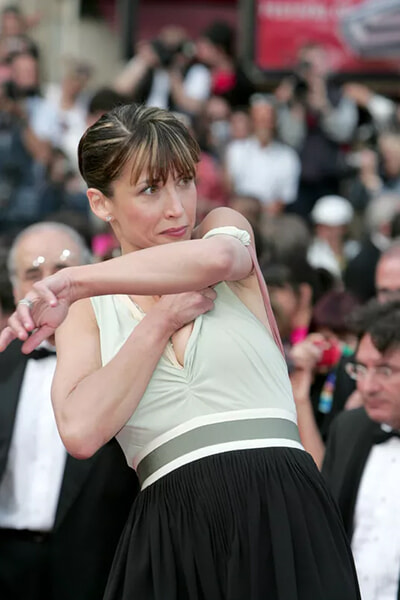 2005年、第58回カンヌ国際映画祭のレッドカーペットで、ソフィー・マルソーの着ていたドレスが滑り、片方の胸が露わになった。(カンヌ、2005年5月13日)photography: Daniele Venturelli / Getty Images