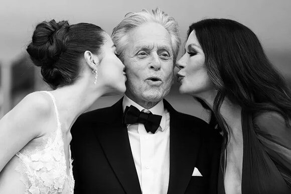 キャリス・ゼタ・ダグラス、マイケル・ダグラス、そしてキャサリン・ゼタ=ジョーンズ。(カンヌ、2023年5月16日) photography: Getty Images