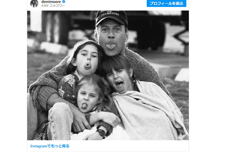 「ハッピー・ファーザーズデー!」ブルース・ウィリスは、6月18日に家族から称えられた。デミ・ムーアはモノクロのノスタルジックな写真をシェアした。写真には、アクション映画スターであるブルース・ウィリスが舌を出している様子と、彼らの3人の娘、ルーマー、スカウト・ラルー、タルーラが写っている。「BW(ブルース・ウィリスのイニシャル)に、これらの美しい3人の娘を与えてくれたことに、永遠に感謝しています。私たちは私たちの #girldad(父親) を愛しています。ハッピー・ファーザーズデー!」と映画『ゴースト』の主演女優デミ・ムーアがコメントした。