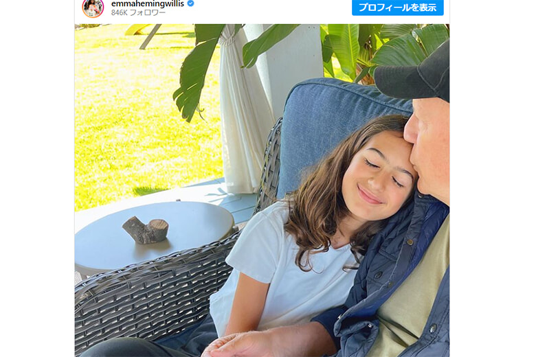 デミ・ムーアだけでなく、彼と15年以上の間を共に過ごしている現在の妻であるエマ・ヘミングもブルース・ウィリスを祝福した。彼女は父の日の機会に、自分の人生をシェアするブルースへの深い愛と尊敬を反映していると述べた。「父の日は、私そしてブルースが私たちの子どもたちを教育する姿を見て思いを馳せる機会です。それは『伝統的』とは言えないかもしれませんが、彼が教えていることは世代を超えて伝わるでしょう。無条件の愛、親切さ、強さ、思いやり、忍耐力、寛容さ、回復力」と、44歳のモデル、エマ・ヘミングは述べ、写真のキャプションと共に、そこにはブルースが11歳の娘メイベル・レイの額に優しいキスをする姿が写っている。