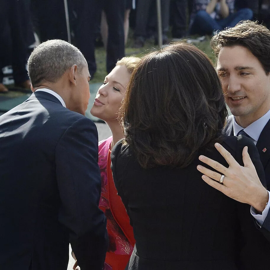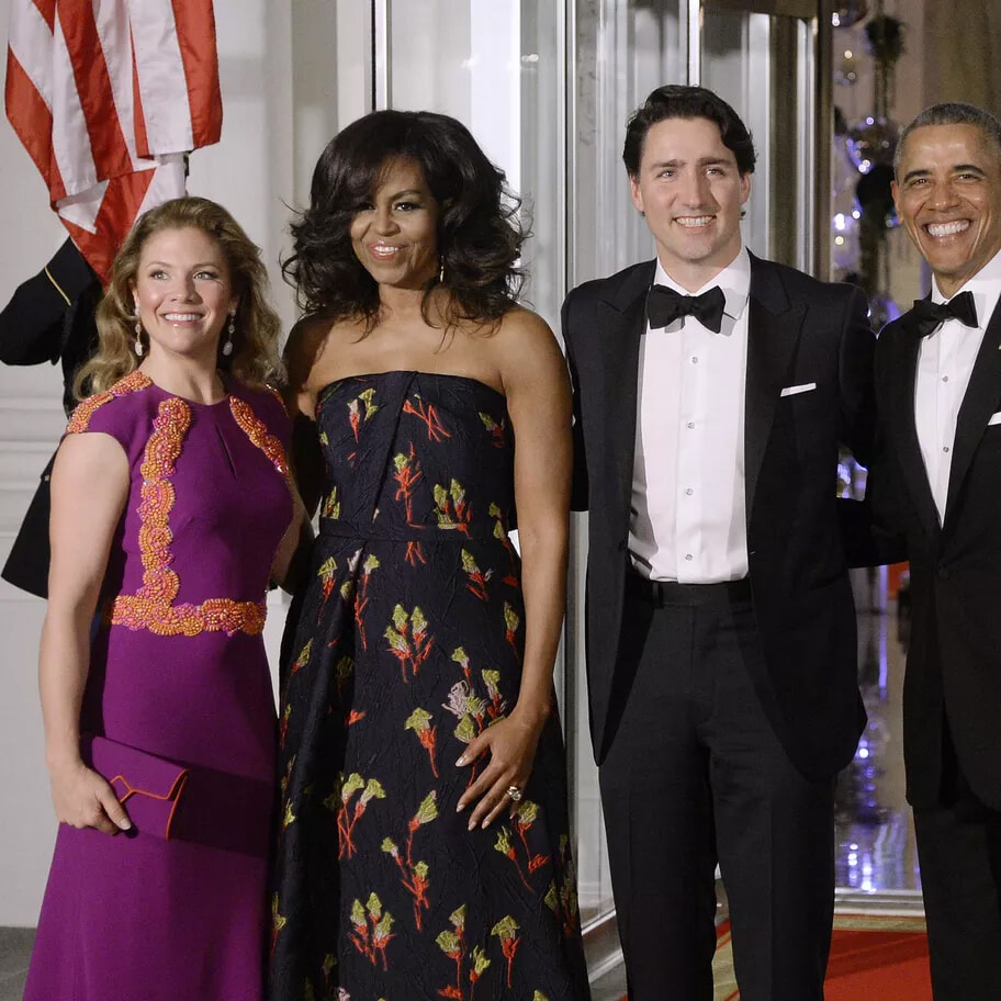 カナダのファーストカップルは、どうやらミシェル&バラク・オバマ大統領(当時)を魅了しようとしているようだ。(ワシントン、2016年3月10日)