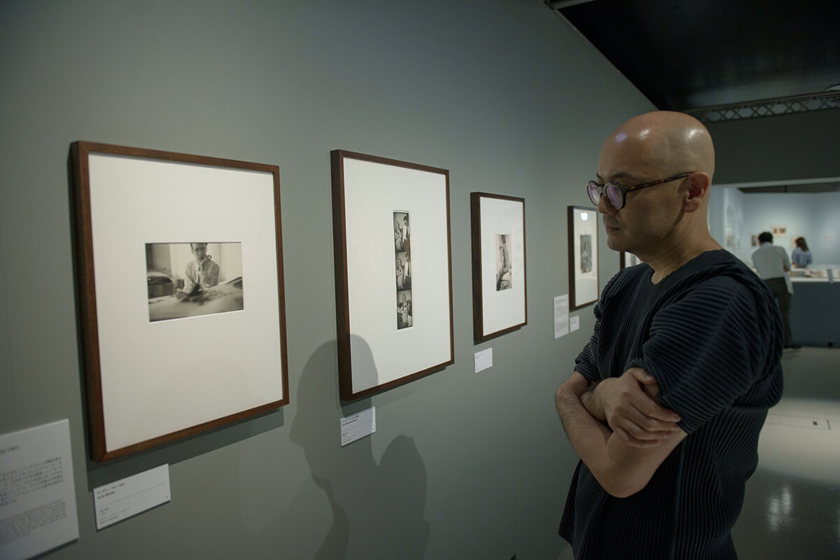 『ソール・ライターの原点』展示にて、アンディ・ウォーホルのスナップに見入る。かつてライターが暮らし、現在は財団が事務所としているニューヨークのアパートでウォーホル作品を目にしたときの驚きを話してくれた。