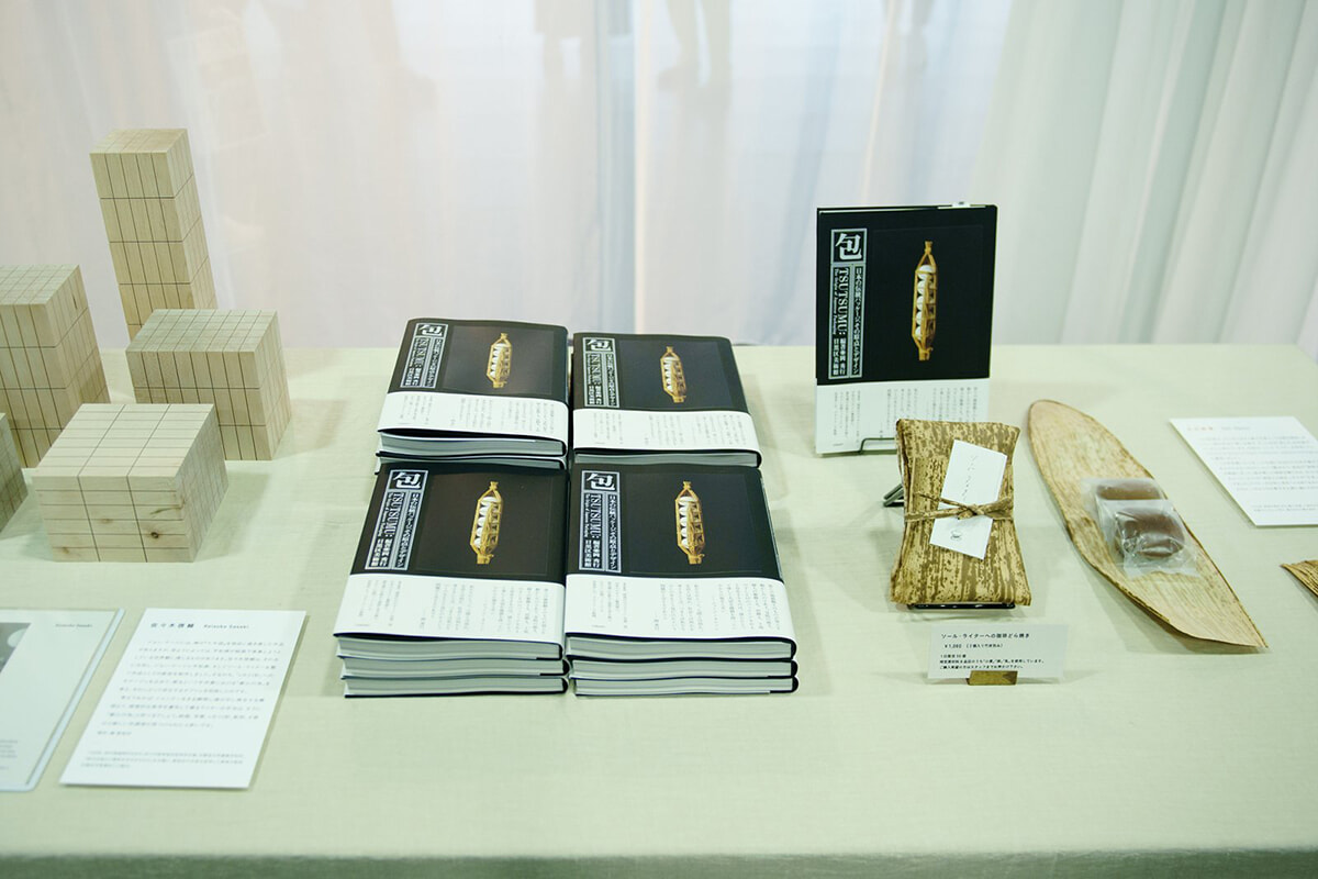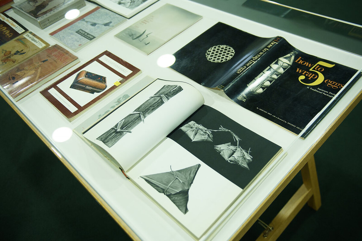 『ソール・ライター日本関係蔵書展』に展示された『how to wrap 5 eggs』。菓子作家の小川紗季はこの本で紹介されていた「竹皮包」に着想し、「珈琲どら焼き」の包装をデザインした。
