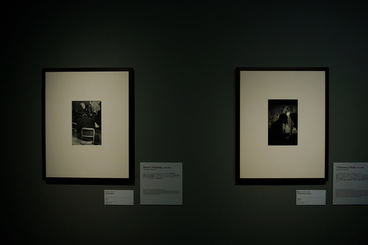 『ソール・ライターの原点』展示風景より 左がマルセル・デュシャンで、右がセロニアス・モンク。