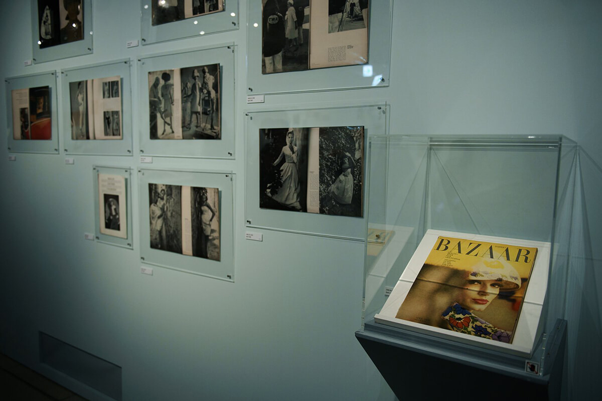 『ソール・ライターの原点』展示風景より 雑誌『ハーパース・バザー』を展示し、ファッション写真を紹介。