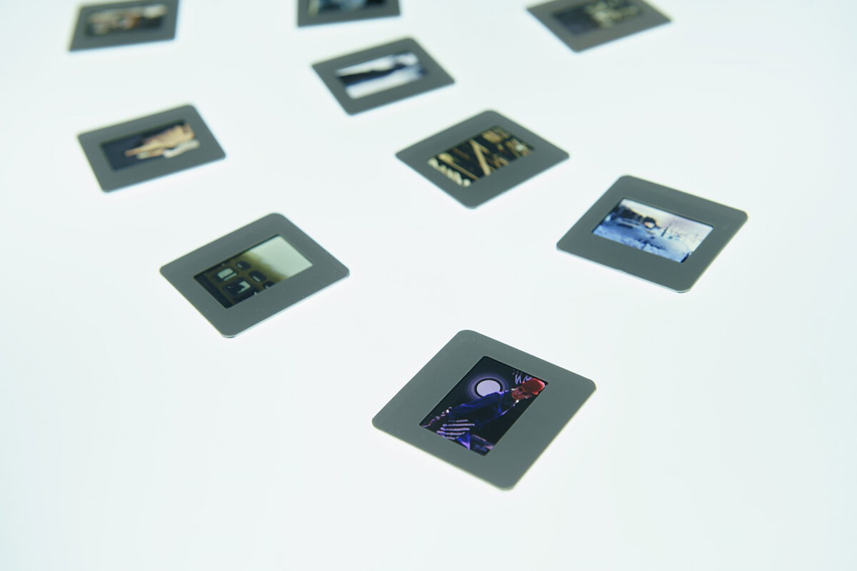 そしてクライマックスが、大型スクリーンでのカラーポジのプロジェクション。小型のスライドでの緻密な画づくりが、美しいトーンそのままにイメージへの没入体験を演出する。