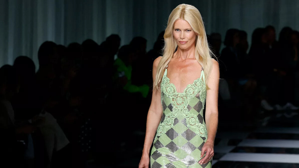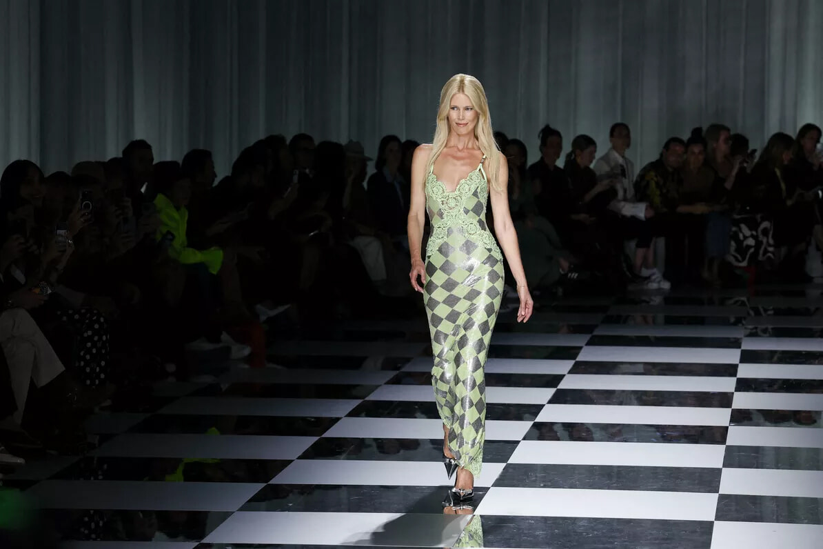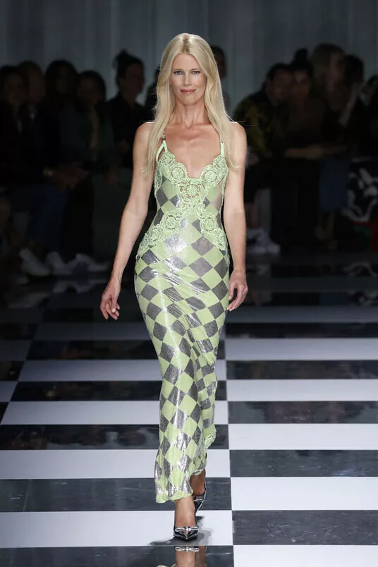2024年春夏ミラノ・コレクション、ヴェルサーチェのショーでのクラウディア・シファー。photography: Abaca