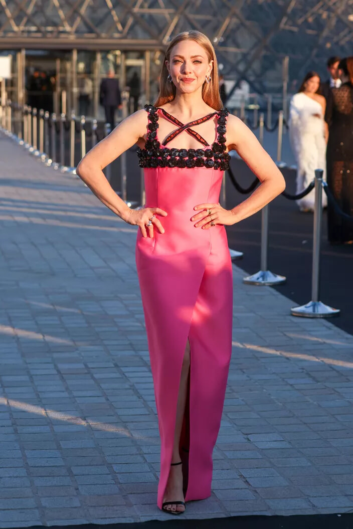 ランコムとルーブルのコラボレーションイベントに出席した女優のアマンダ・サイフリッド。(9月26日)