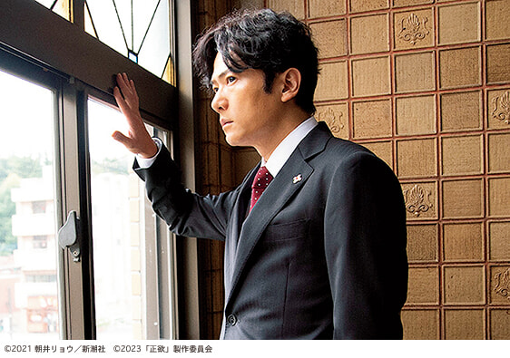 「小説では冒頭、種明かしのようにある事件について語られます。僕が演じた寺井啓喜はその事件を担当する検事であり、彼は社会の規範とする型に収まって生きている男です。これまで僕は、どちらかというと規範から外れる人物を多く演じてきました。そもそも表現というのはスタンダードから逸して、壊すことから生まれるものだと思ってきたので、自分の考えとは正反対の市井の人を演じることになりました。ただ、啓喜との共通点がなくもない。誰しも、何かひとつ規範とする型がないと、みんなと一緒じゃないと、不安じゃないですか。僕だって、そういう思いももちろんあります」
