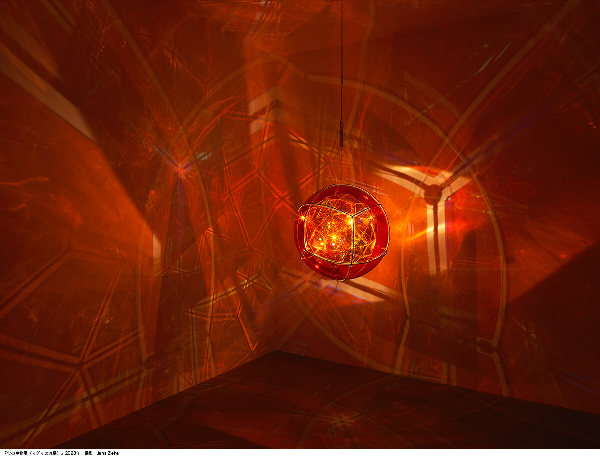 環境問題などの社会課題やサステナビリティへの継続的な取り組みで世界的に注目されるアイスランド系デンマーク人のエリアソン。自然現象やその要素である色や光、動きが導く知覚体験を通して、世界の在り方や自然との関係性について新たな解釈を促してきた。本展では、当館オープンに伴い、初めて再生金属を用いて制作されたパブリックアートを軸に、光と水を使った大型インスタレーション、複雑に屈折する光を内包する幾何学的な立体作品、太陽光や風といった動力で描いたドローイングを公開。自然現象から幾何学、物理や動作パターン、色彩学に関する研究に裏付けられた知覚に訴えかける作品群が揃う。現実世界の「未知の足場」を想像力により可視化する試みに刮目したい。