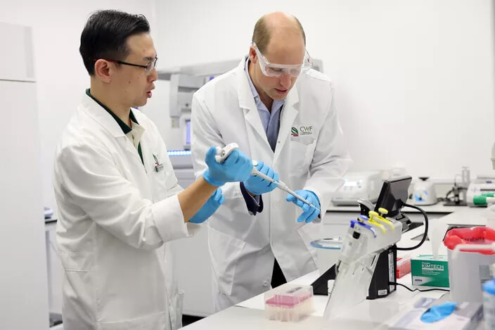 DNA塩基配列検査を行うウィリアム皇太子博士。(シンガポール、2023年11月8日)