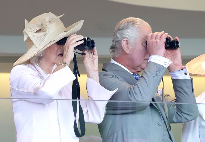 同じ方向を見つめることが、長続きする愛の秘訣。(ロイヤル・アスコット競馬でのカミラ王妃とチャールズ3世、2023年6月21日)