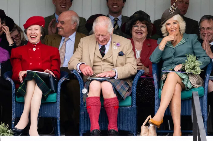 毎年恒例、ウィンザー家が愛したスコットランドの伝統的なゲームが集まることで有名なブレーマー・ギャザリングのスタンドで笑いが起こった。(ブレーマー、2023年9月2日)