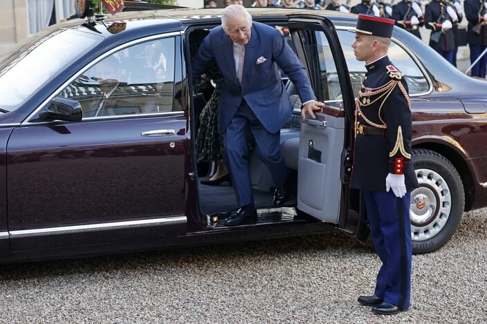 エリゼ宮に到着した国王チャールズ3世。(パリ、2023年9月21日)