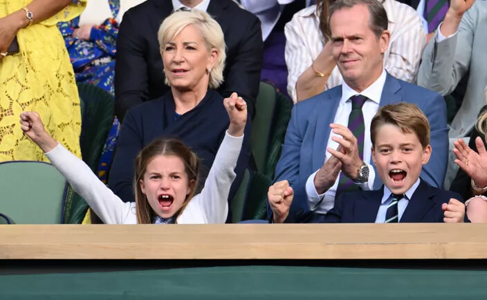 カルロス・アルカラスがウィンブルドンでノバク・ジョコビッチを破る。(シャーロット王女とジョージ王子、ロンドン、2023年7月16日)