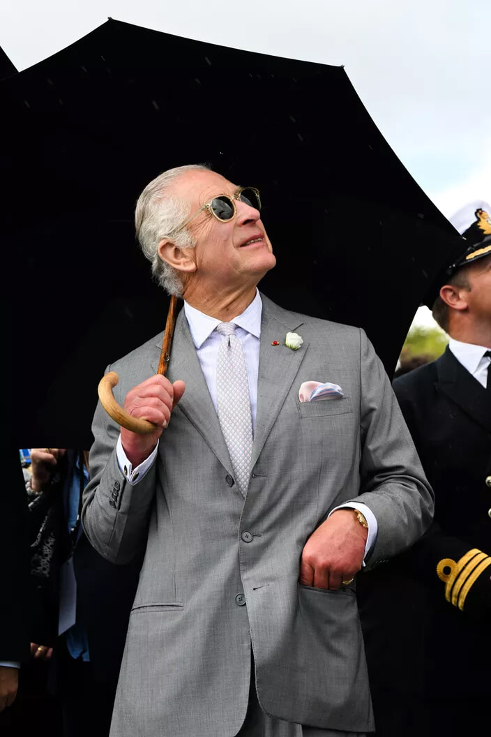 傘とサングラス、チャールズ3世ルック。(ボルドー、2023年9月22日)
