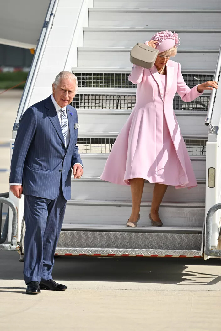 オルリー空港に着陸するチャールズ3世とカミラ王妃。(パリ、2023年9月20日)