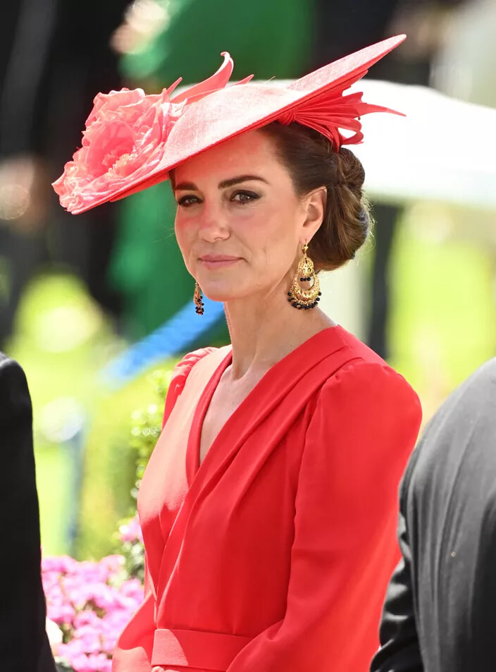 英国で最も人気のある競馬レース、ロイヤルアスコットに初登場したキャサリン皇太子妃がセザンヌのピアスを着用。(アスコット、2023年6月23日)