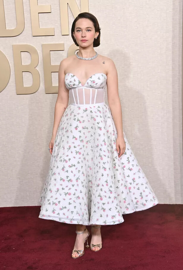 81回ゴールデン・グローブ賞授賞式にプラダを身に纏って現れたベラ・ラムジー。(ロサンゼルス、202417日)
