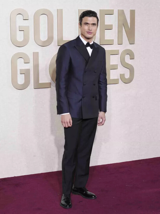 81回ゴールデン・グローブ賞授賞式にて、ジョルジオ・アルマーニを着用したチャールズ・メルトン。(ロサンゼルス、202417日)