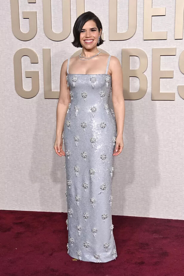 81回ゴールデン・グローブ賞授賞式でドルチェ&ガッバーナのドレスを身にまとったアメリカ・フェレーラ。(ロサンゼルス、202417日)